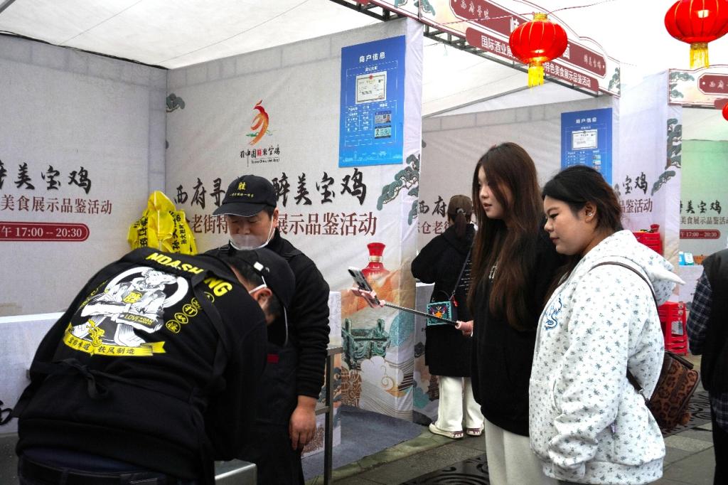 学生们在陈仓老街·太阳市展区,不仅参与了名酒展示展销,还融入了非遗文化展演、西府美食体验等环节,全方位锻炼了跨领域整合营销能力。