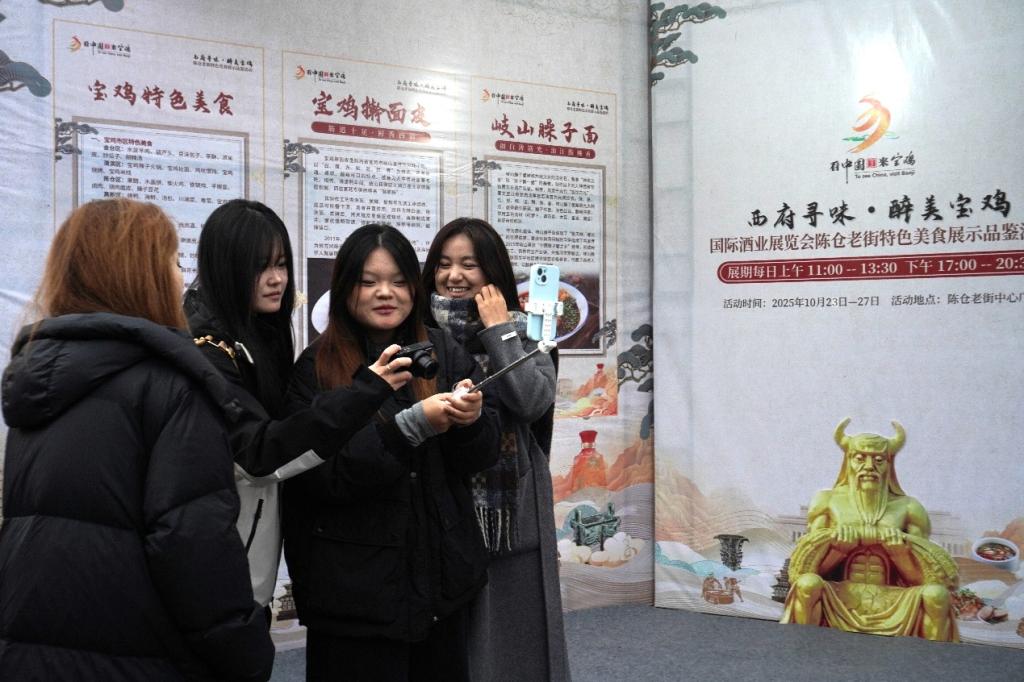 在展会现场,学生们分组行动,有的负责西凤酒展区的直播推广,有的聚焦非遗技艺体验区的文化展示,有的则参与“醉美宝鸡”消费体验周活动的线上宣传。