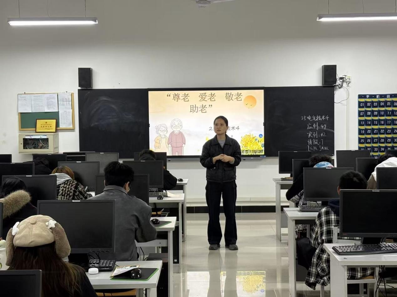 为弘扬中华民族"尊老、爱老、敬老、助老"的传统美德,培养学生的感恩意识与孝道精神,2025年11月9日晚,电子信息学院组织各班级开展了以"尊老、爱老、敬老、助老"为主题的第十一次全院班会。各班班主任认真筹备、精心组织,全体学生积极参与。
