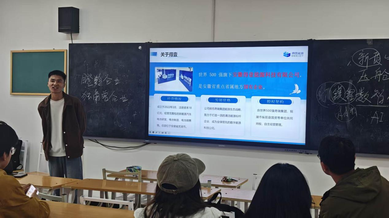 衢州鹏辉能源科技有限公司、安徽得壹能源科技有限公司、奇瑞控股集团有限公司三家企业受邀到场,为同学们带来了详实的企业介绍、岗位需求、发展路径及薪酬福利等信息。