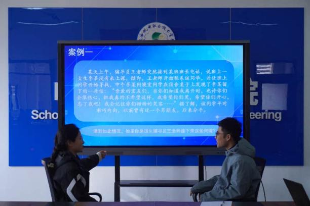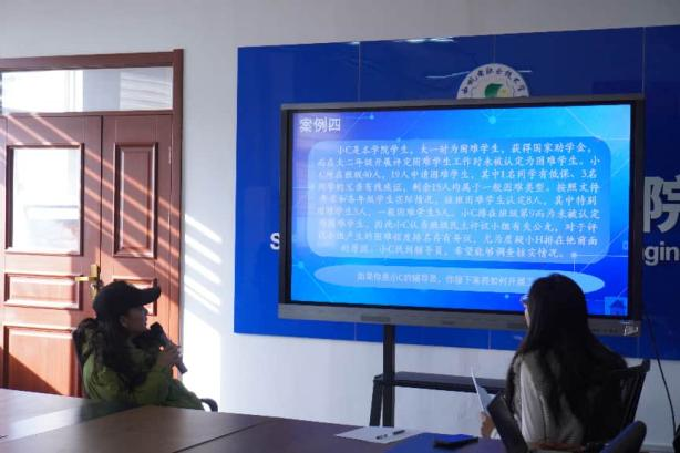 本次选拔赛严格参照校级训练营模式设置,聚焦实战练兵、提升业务本领,设置案例评选、案例研讨、谈心谈话三个核心环节,全面考察辅导员的专业素养与业务能力。案例研讨环节中,辅导员现场抽取案例,围绕案例辨析原因、研讨对策,限时问答的紧张节奏充分考验了辅导员的理论运用能力与应急处突水平;谈心谈话环节里,参赛辅导员现场抽取题目后,与学生志愿者展开一对一沟通,精准把握学生特征与成长规律,不仅在耐心引导中解决虚拟场景中的学生困惑,更体现了辅导员的反思与改进意识。