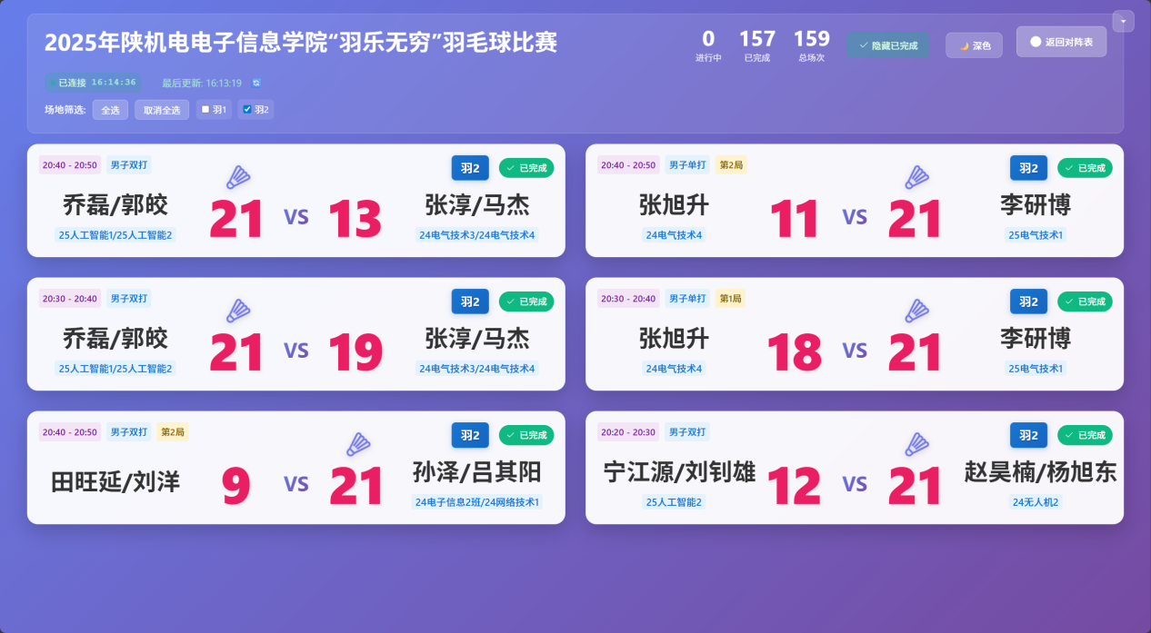 这场充满活力与温情的赛事已落下帷幕,但电子信息学院同学对运动的热爱、对团队协作的追求永不停止。无论是胜利的喜悦,还是失利的遗憾,都将成为每个队伍、每名成员心中独特的记忆。让我们共同期待下一届羽毛球赛和后续电子信息学院运动赛事中再创精彩,在健康中国的时代画卷中续写电院篇章,我们明年再见!