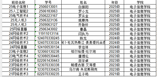 截止3月20日还有以下同学还未注册,依据《陕西机电职业技术学院学籍管理规定(修订)》(陕机电职院发〔2022〕151 号)第十三条第四款“未办理暂缓注册手续或未经请假逾期2周未注册者,视为自动放弃学籍、《陕西机电职业技术学院学生休学、保留入学资格(学籍)和入(复)学、退学工作实施细则》(陕机电职院发〔2024〕49号)第六条第六款“开学后两周内未注册而又未履行暂缓注册手续,予以退学。”